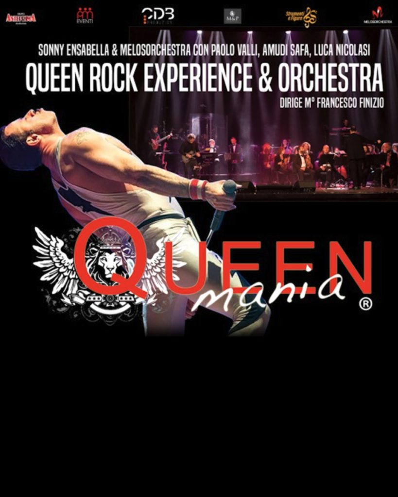 Sonny Ensabella dei Queenmania in “Queen Rocke Experience & Orchestra” con Melos Orchestra e Strumenti&Figure per rendere omaggio ai QUEEN e FREDDIE MERCURY con un grande concerto rock che ripercorre la storia di uno dei pilastri della musica internazionale con il suggestivo intervento degli orchestrali.